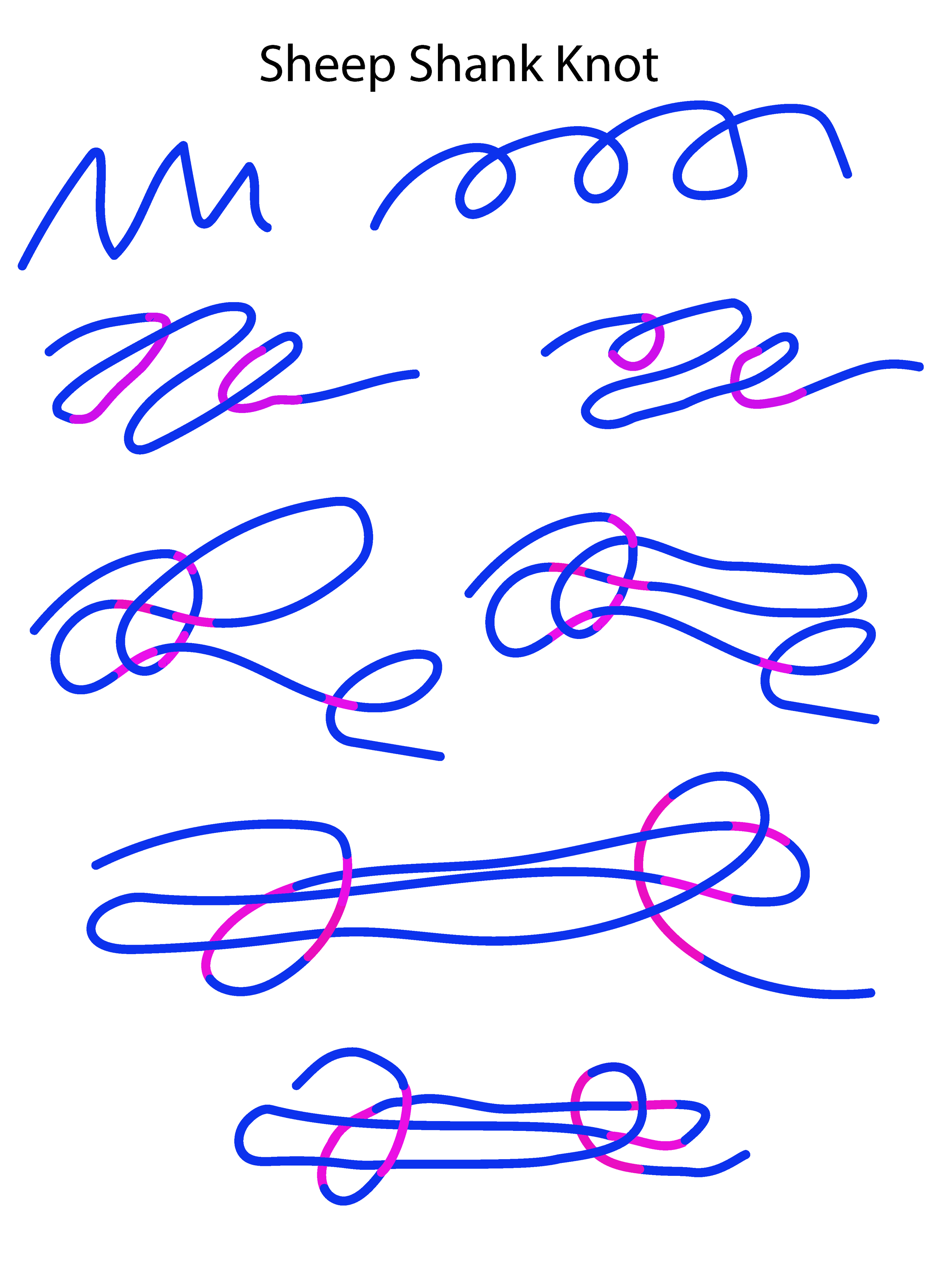 A visual-communication exercise translating physical knot-tying steps into clear, word-free instructional diagrams. Students created four knot sequences using only shape, line, and hierarchy to guide the viewer through the process.